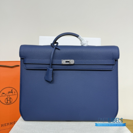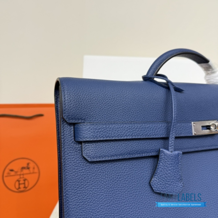 Discover the epitome of sophisticated professionalism with our Hermes Kelly Depeches 36 Briefcase. This isn't just an accessory; it's a statement of power and refined taste, now accessible through our masterful craftsmanship. Meticulously crafted to be a 1:1 highest quality replica, every detail of this iconic briefcase is mirrored with unparalleled precision. Constructed from premium Epsom leather, this luxury replica bag offers a robust and scratch-resistant texture that maintains its impeccable structure for years, emulating the feel of the genuine article. With its generous dimensions of 36.6cm in length, 29cm in height, and 5cm in depth, it effortlessly accommodates laptops, documents, and daily essentials without compromising its sleek, minimalist silhouette.
