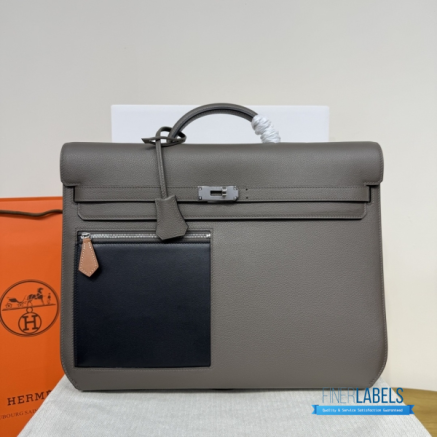 Discover the epitome of sophisticated professionalism with our Hermes Kelly Depeches 36 Briefcase. This isn't just an accessory; it's a statement of power and refined taste, now accessible through our masterful craftsmanship. Meticulously crafted to be a 1:1 highest quality replica, every detail of this iconic briefcase is mirrored with unparalleled precision. Constructed from premium Epsom leather, this luxury replica bag offers a robust and scratch-resistant texture that maintains its impeccable structure for years, emulating the feel of the genuine article. With its generous dimensions of 36.6cm in length, 29cm in height, and 5cm in depth, it effortlessly accommodates laptops, documents, and daily essentials without compromising its sleek, minimalist silhouette.